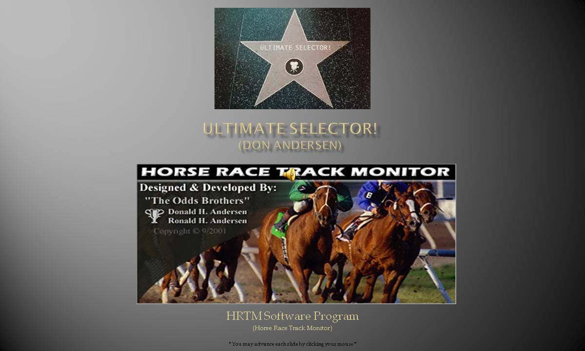 Now I will be able to provide the quickest way to post & hand out my selections via my Web TV. I look forward to having my latest update to my software program by this weekend. I have a copy now but it's not all done yet but I can use it as all the calcs I use are correct. It's all the quick at a glance highlighting & shading that needs to be finished. I have been very happy with the results! With that being said, please feel free to stop by & say hello & check it out! I look forward to seeing you in the Winners Circle!
